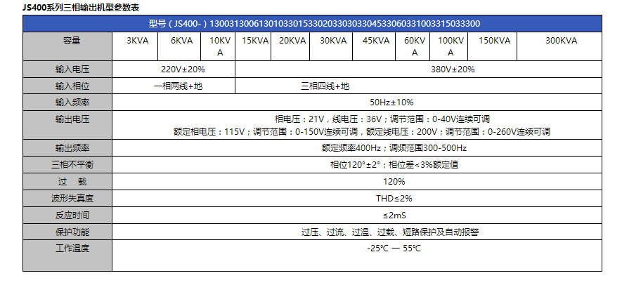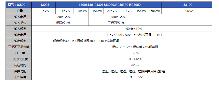 描述: JS400系列400Hz中頻電源專門為航空、電氣設(shè)備研發(fā)制造,可廣泛應(yīng)用于飛機啟動、維修供電、組裝基地、及機載設(shè)備、雷達(dá)等電子設(shè)備實驗室等場所,為其提供穩(wěn)定的400Hz交流電。