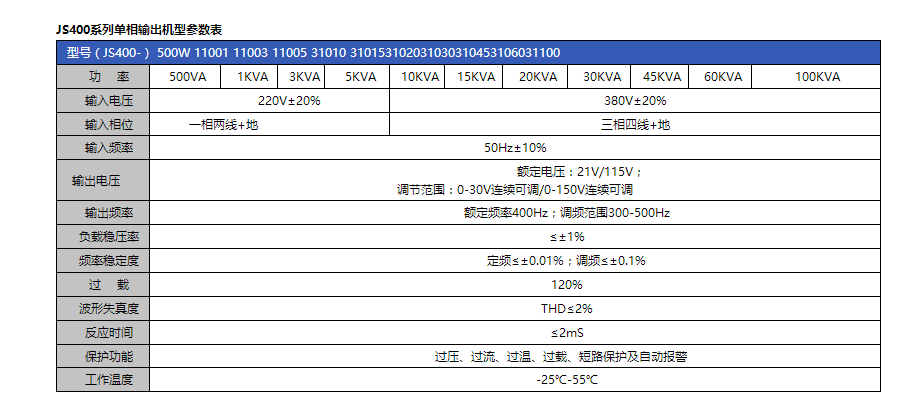 具備400Hz電源所有特點